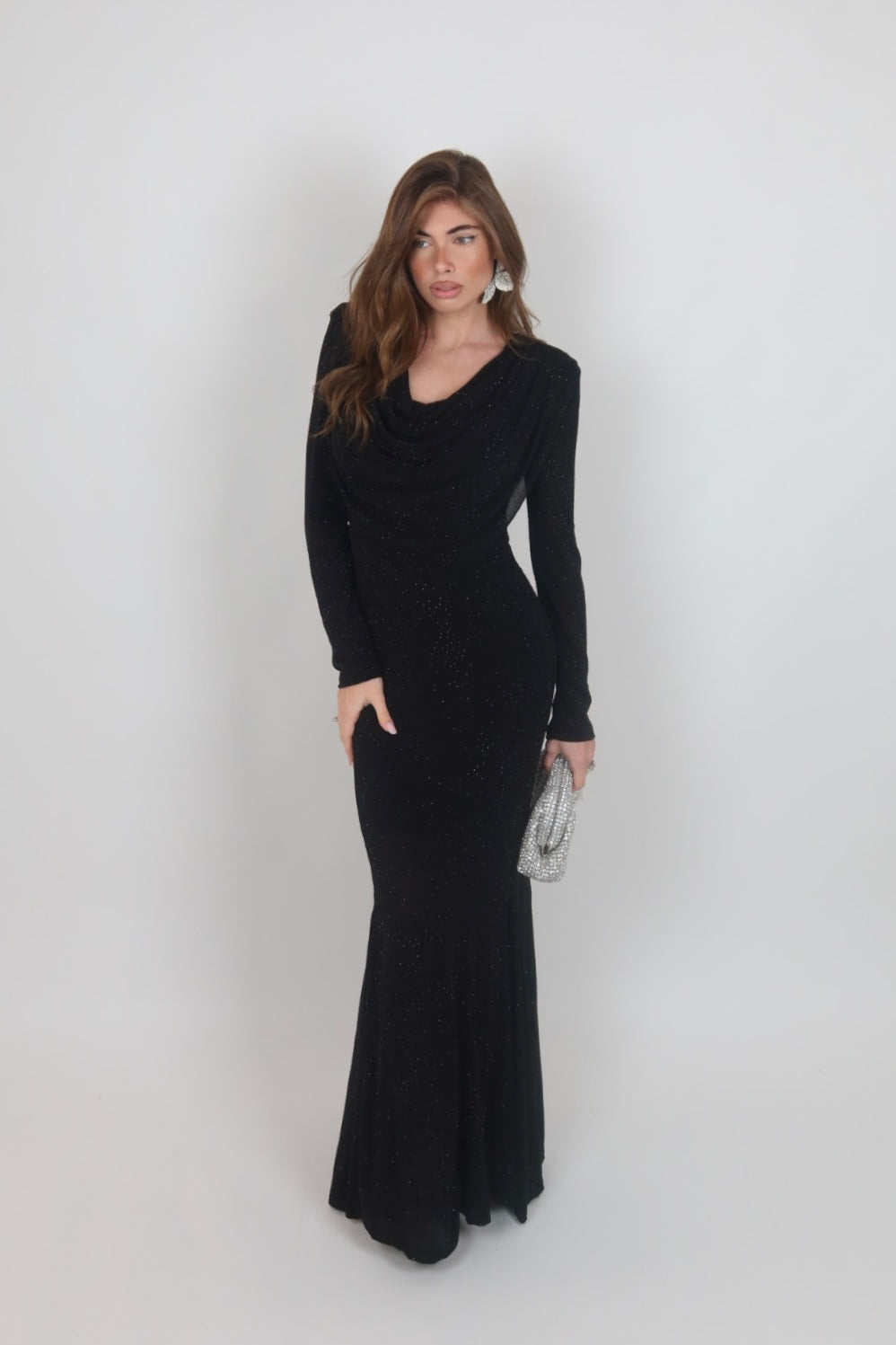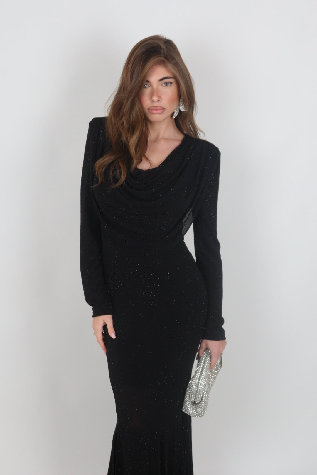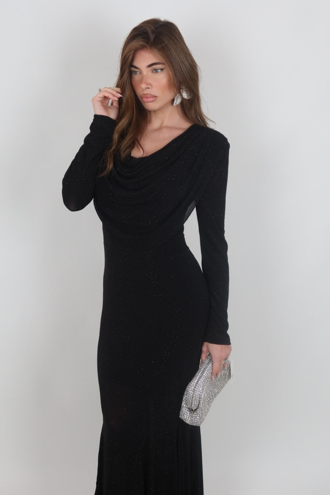 Dress Allyson nero con scollo drappeggiato