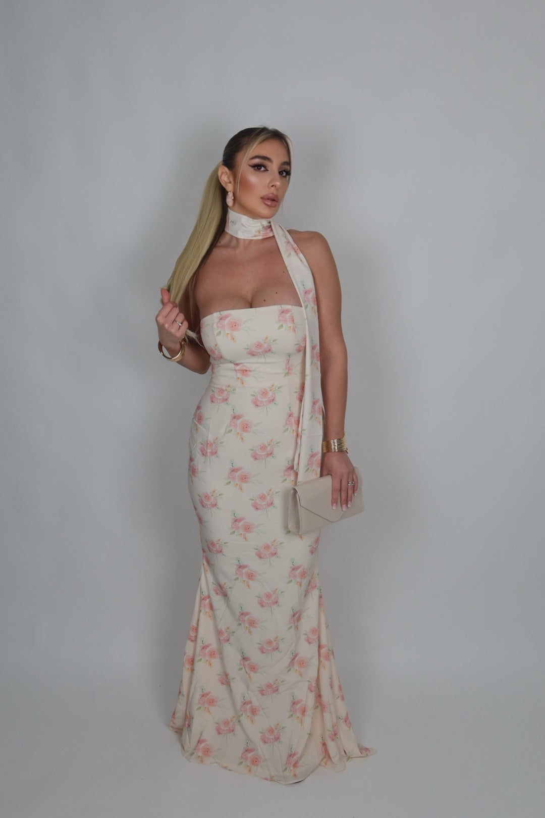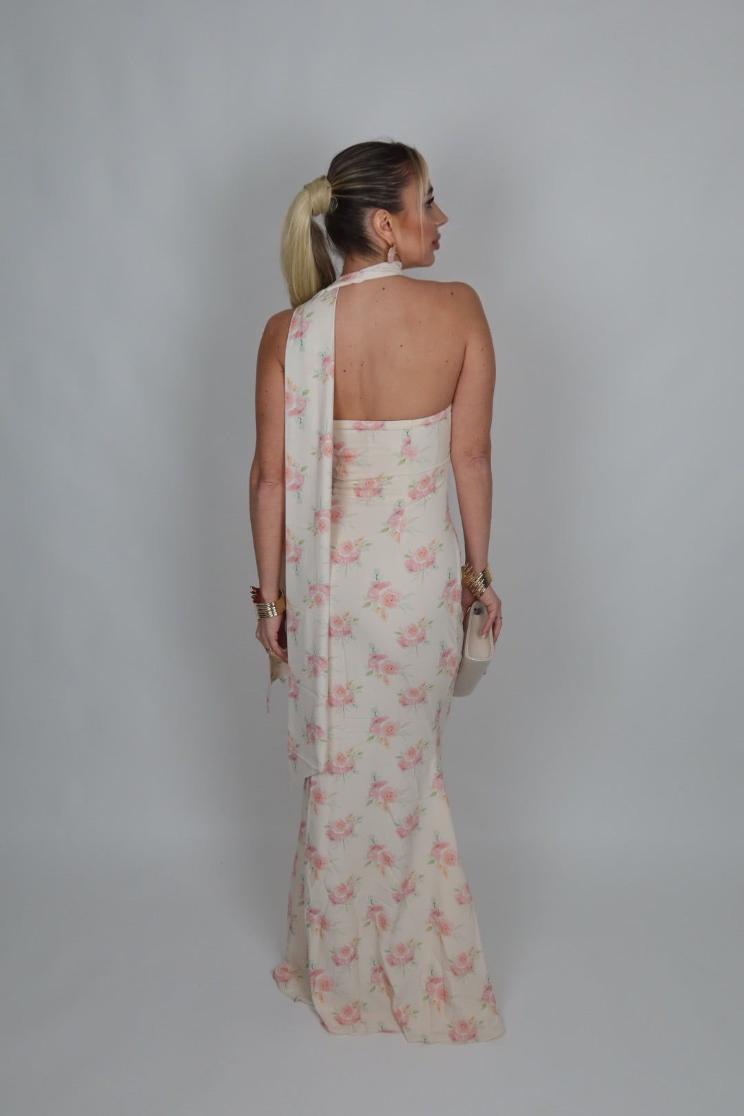 Abito Roses a sirena con foulard