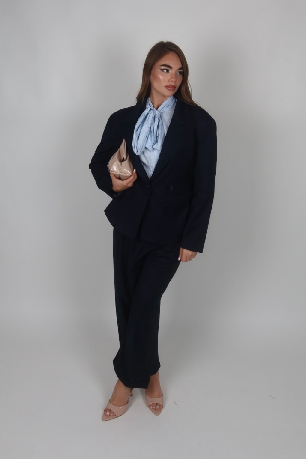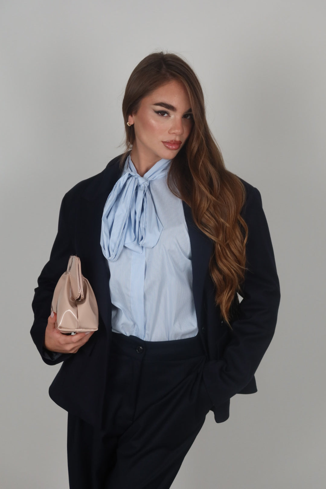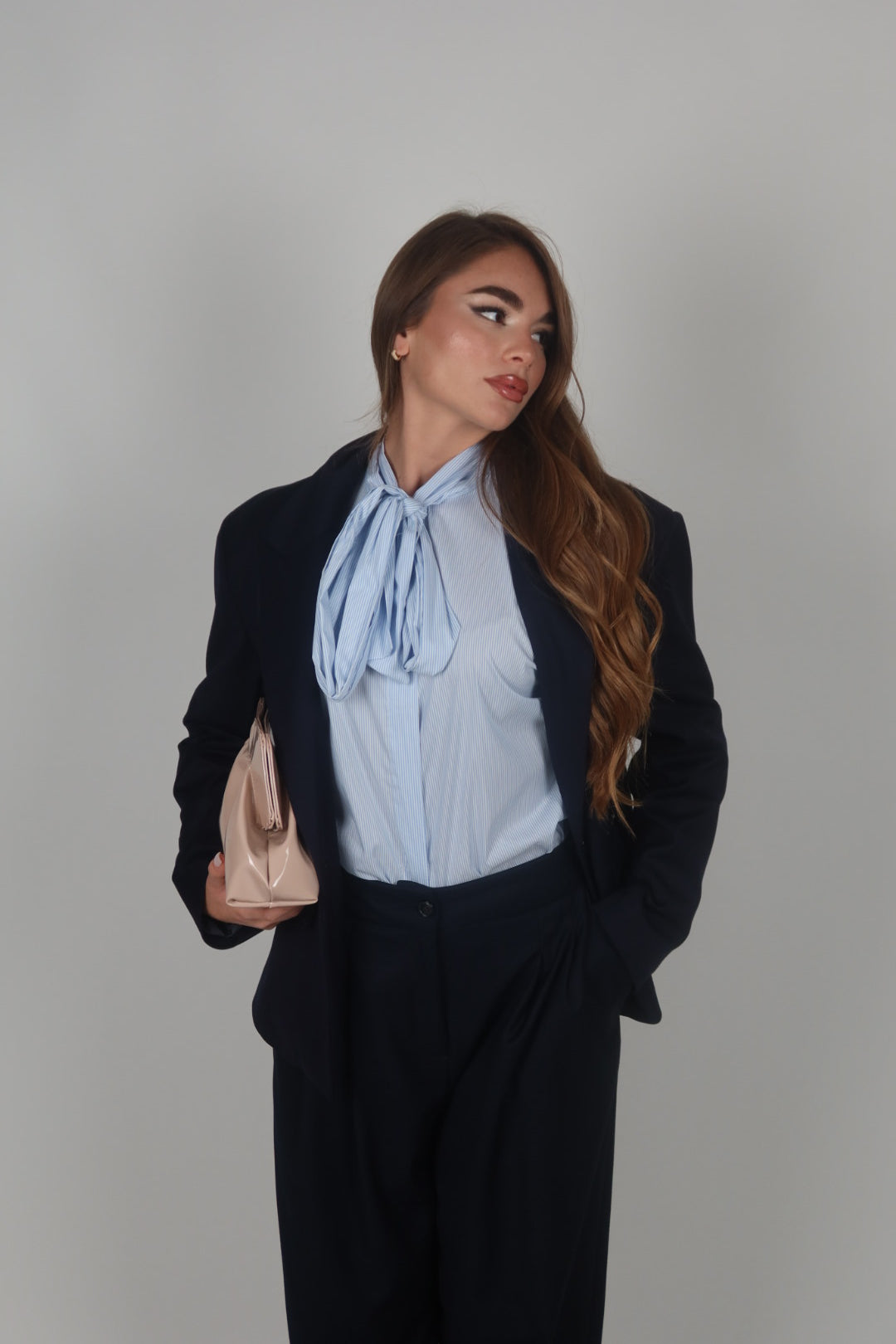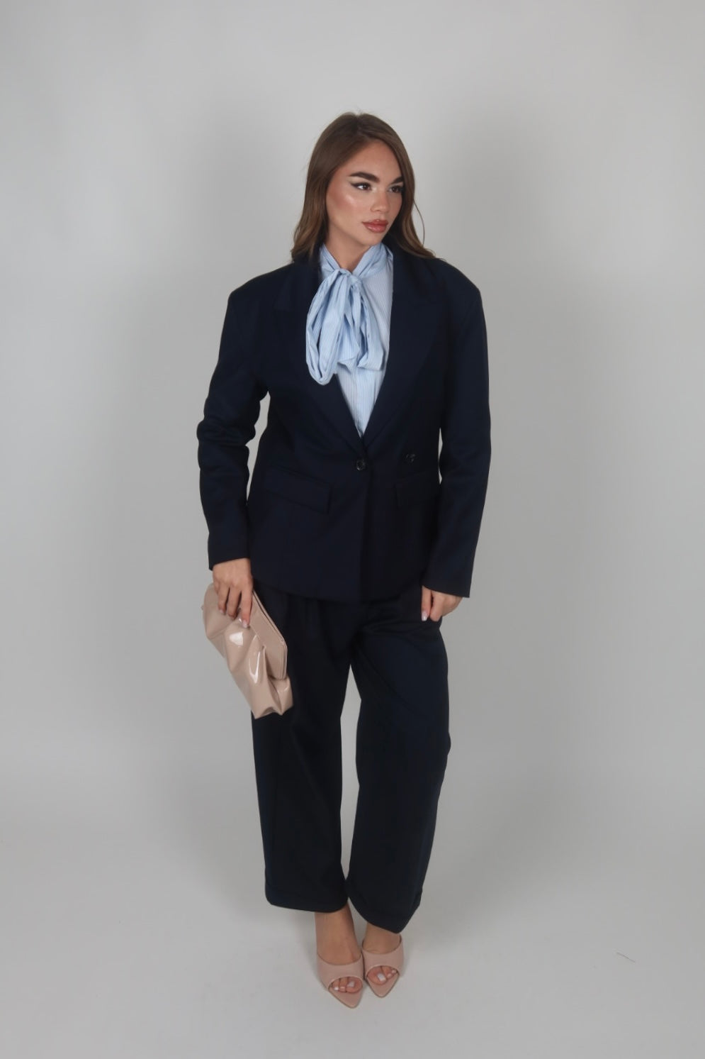 Tailleur azzurro polvere