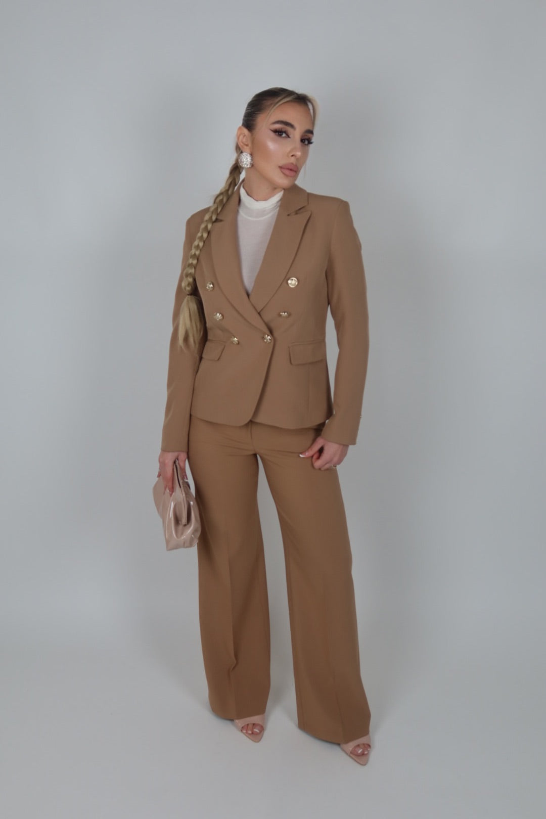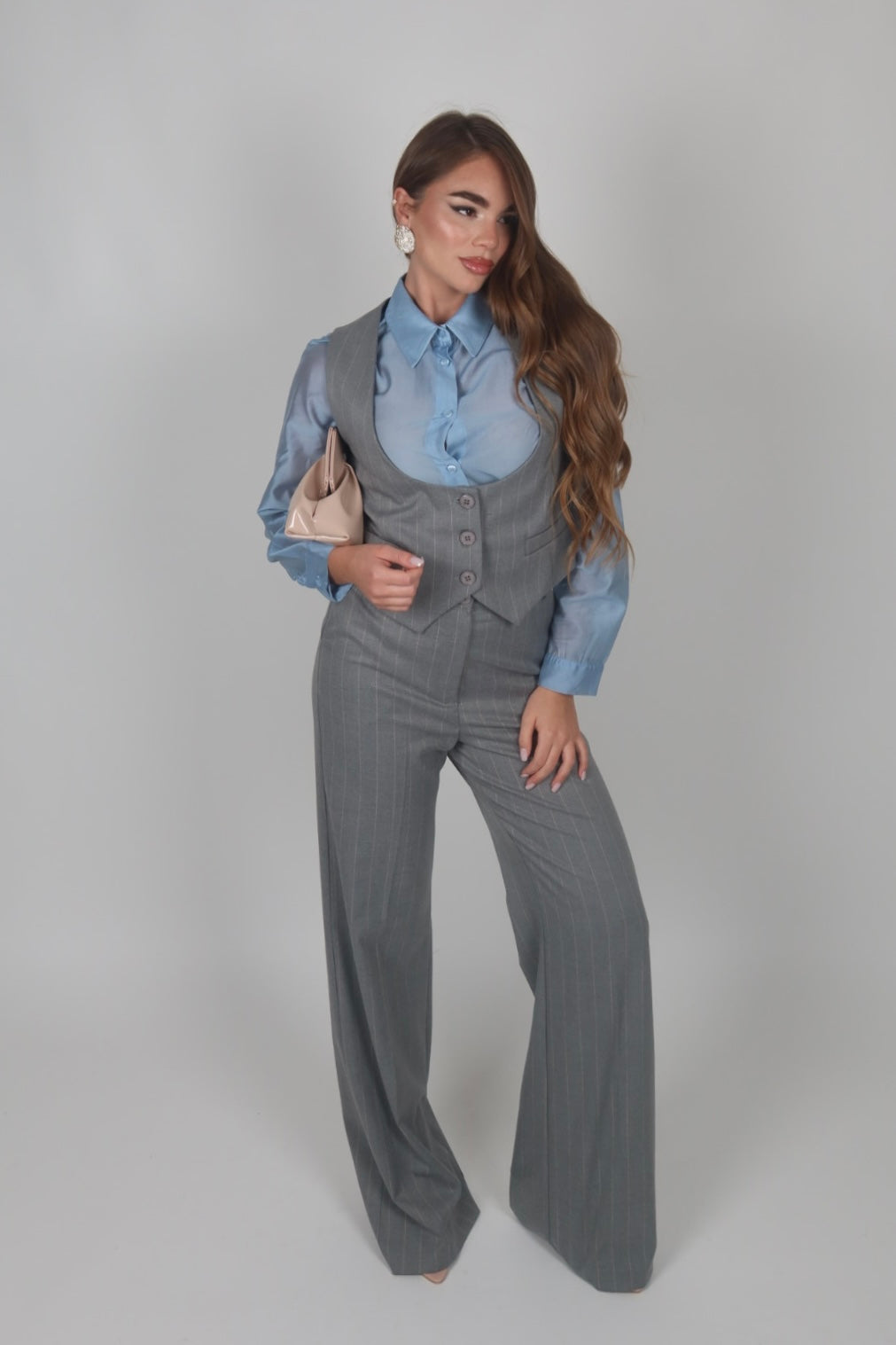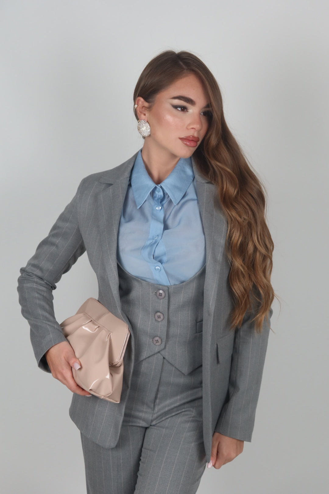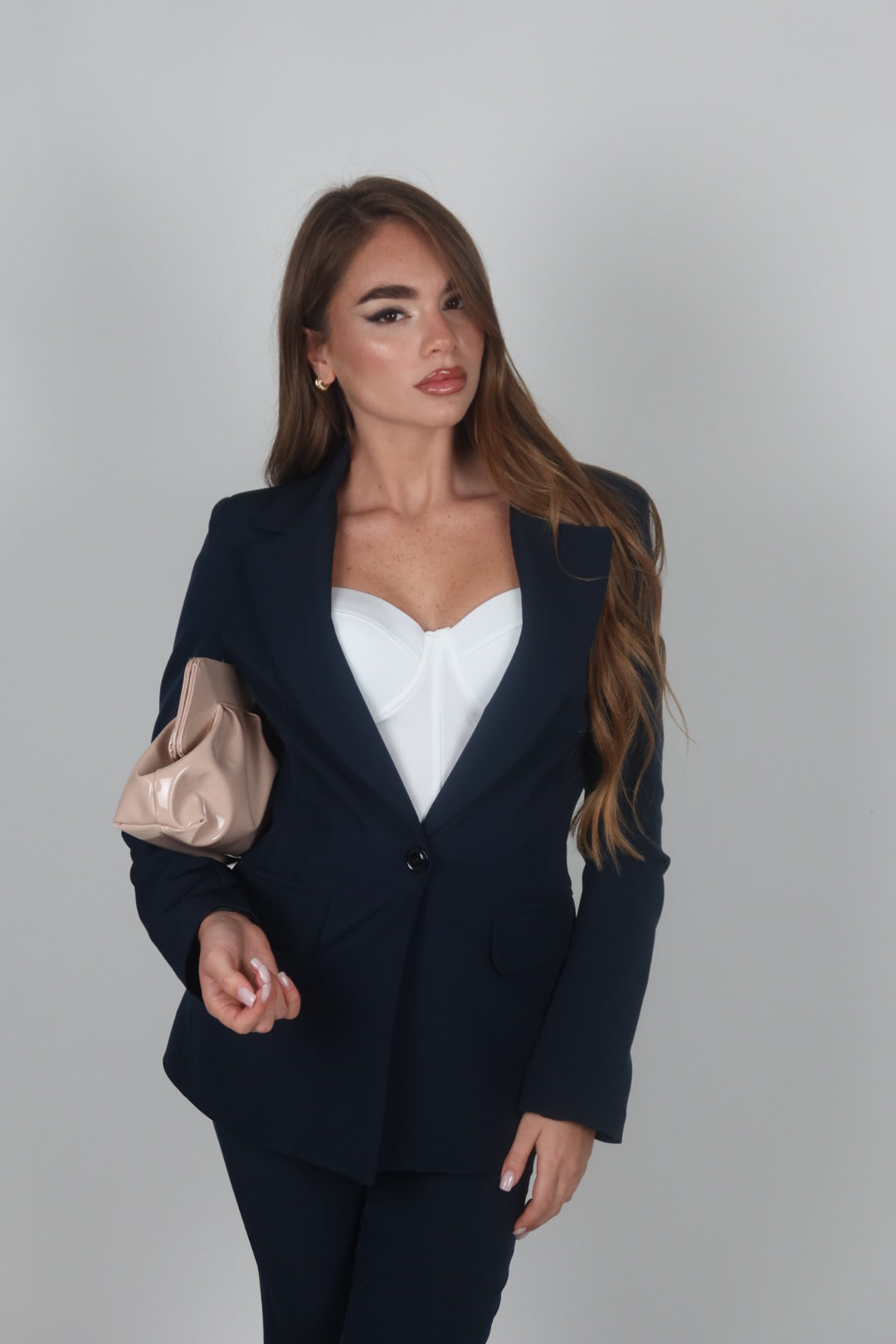 Tailleur azzurro polvere