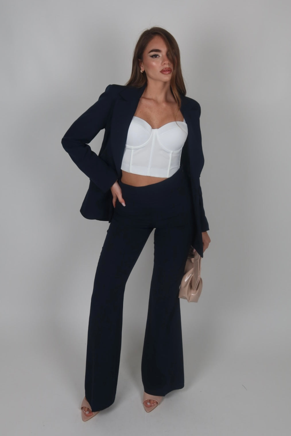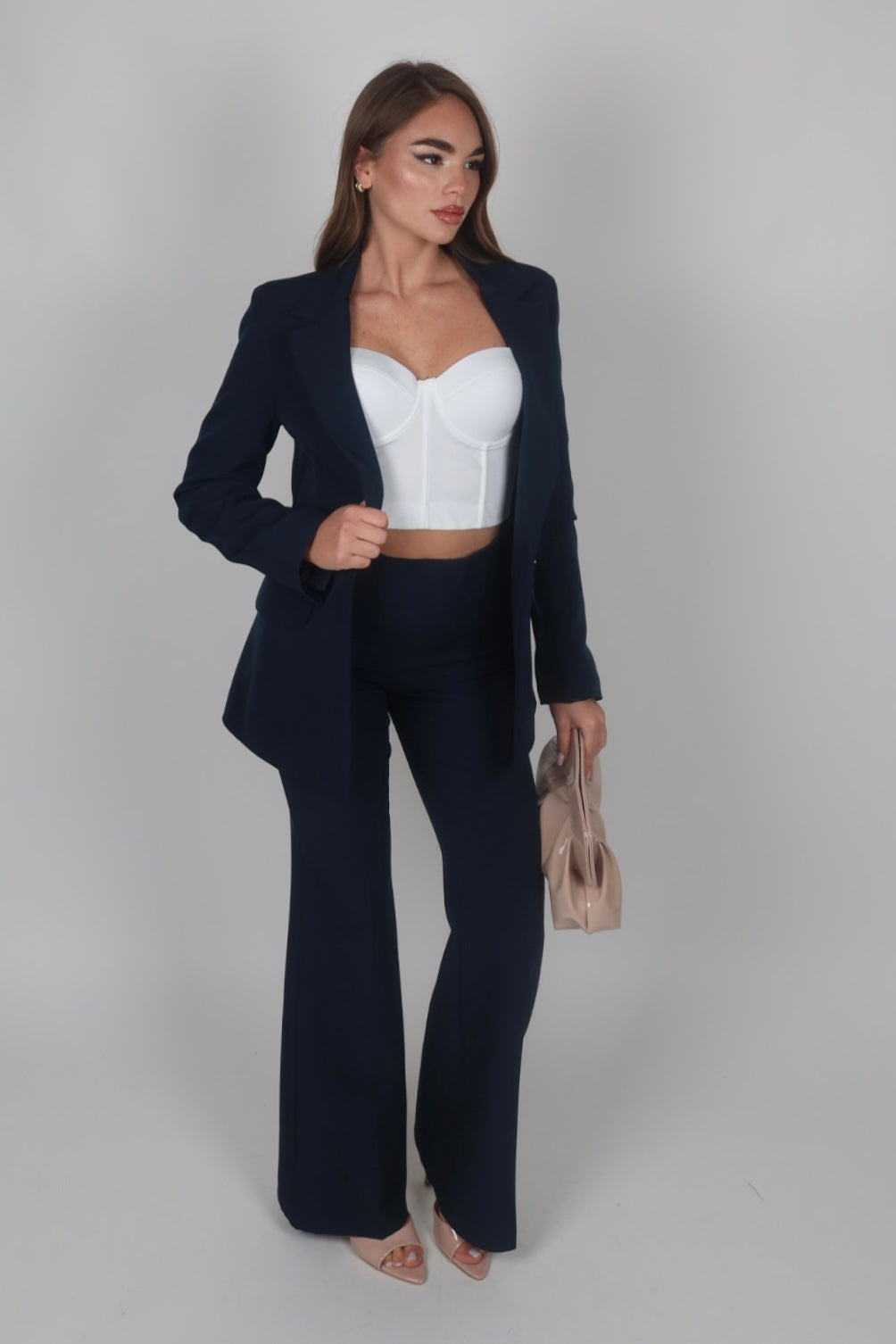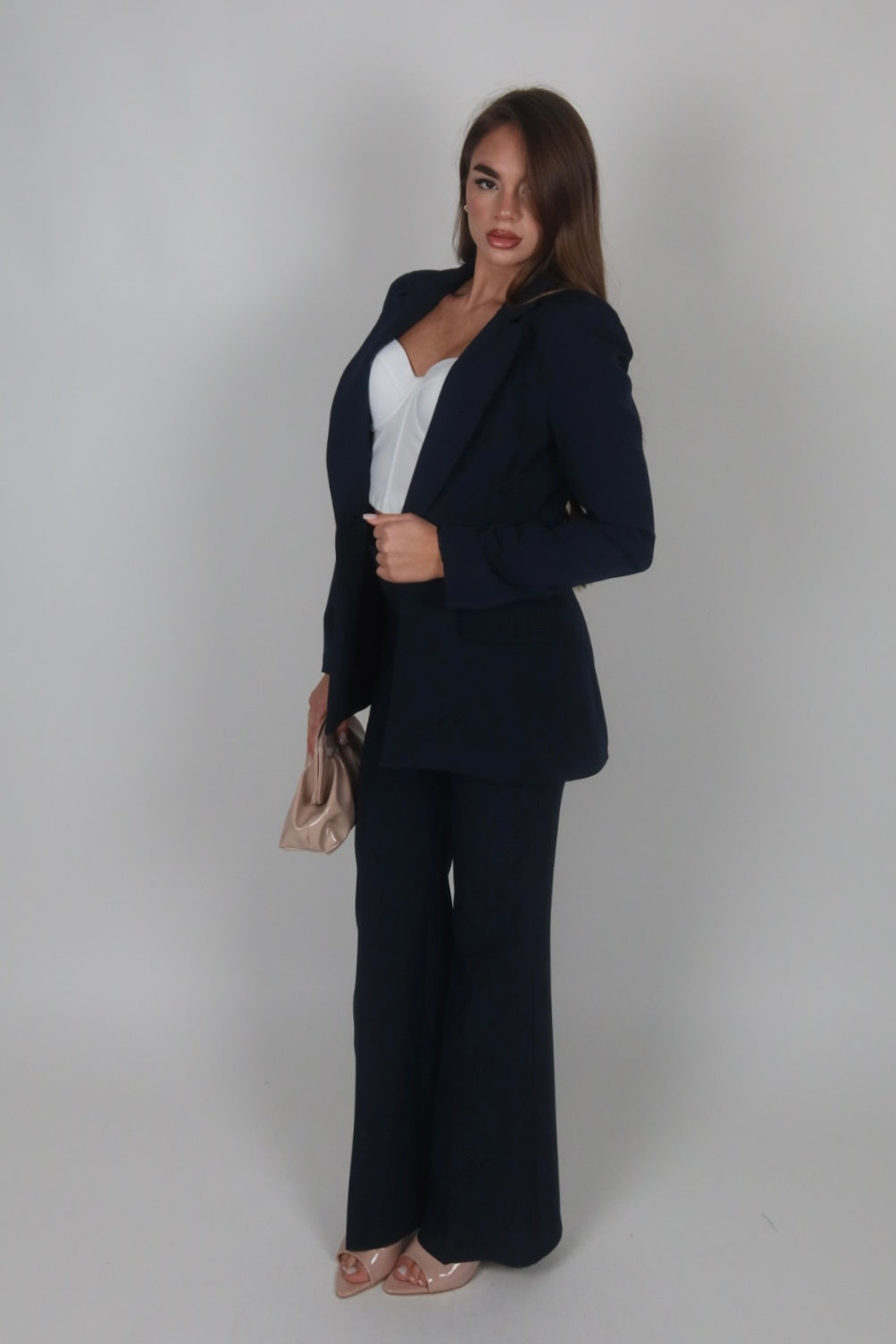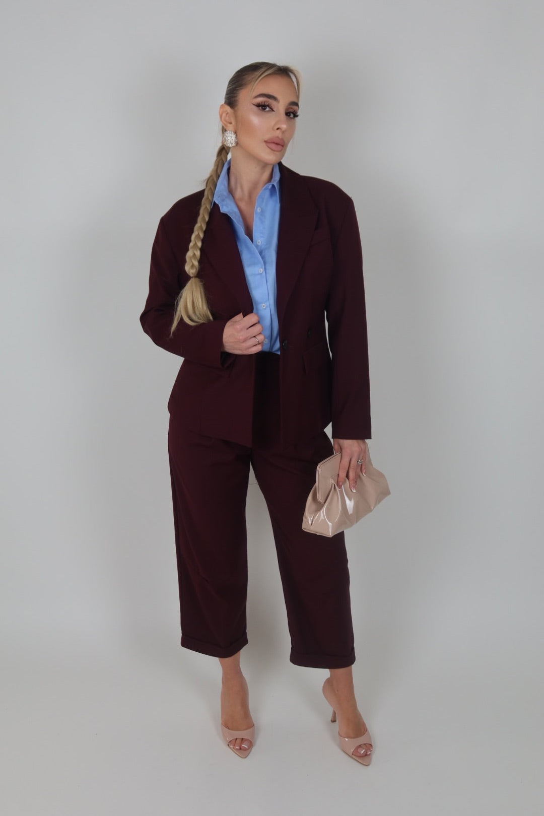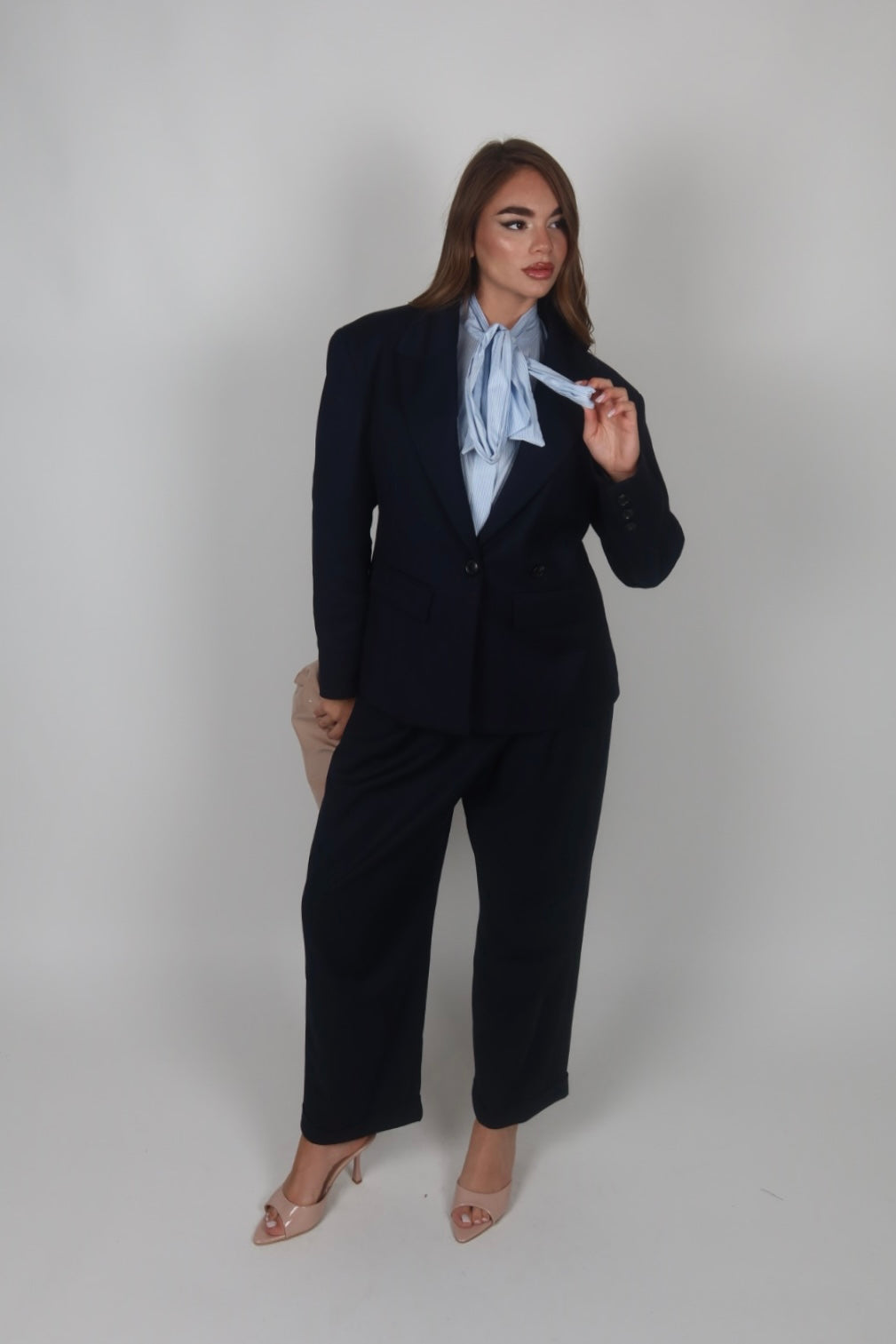 Tailleur azzurro polvere
