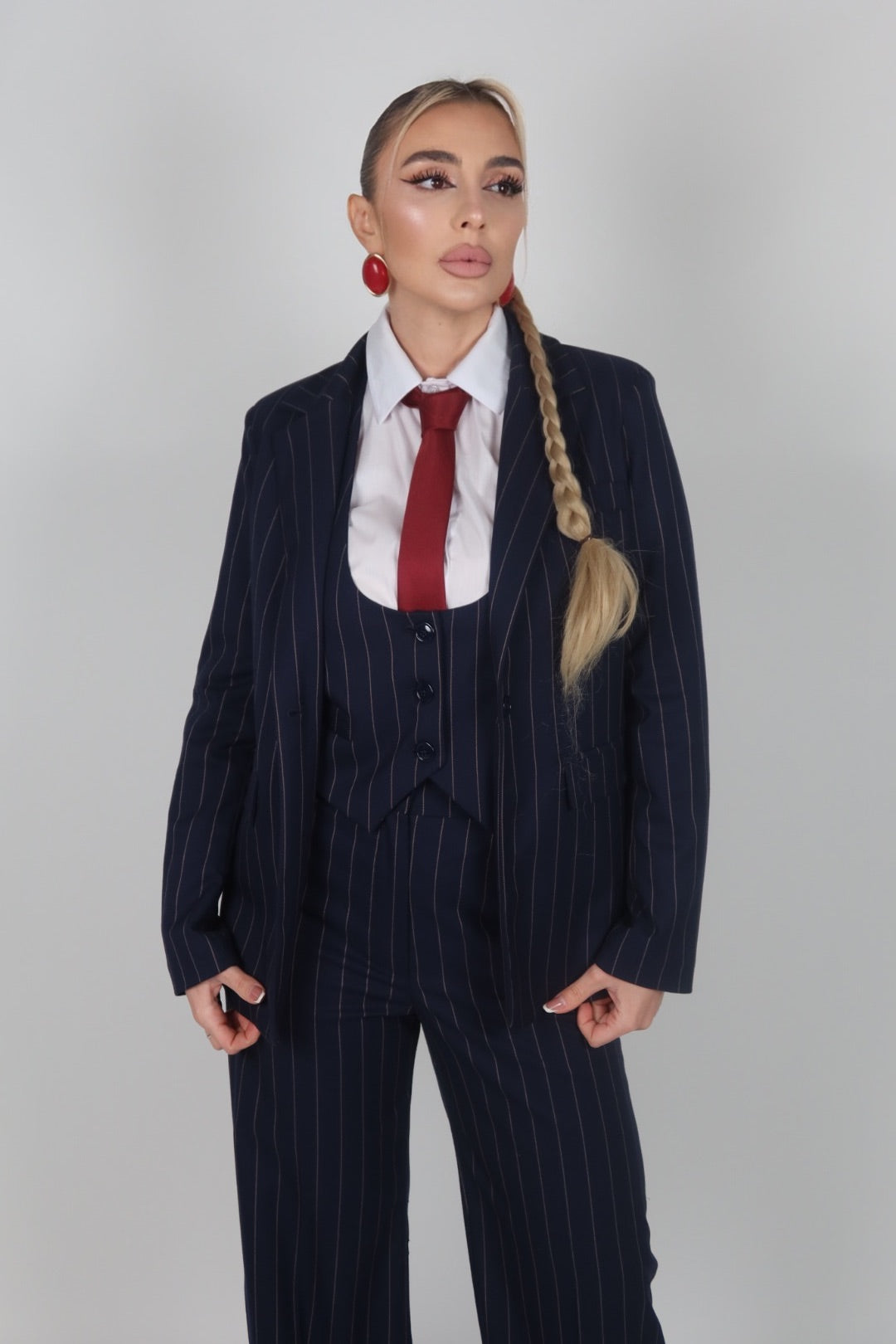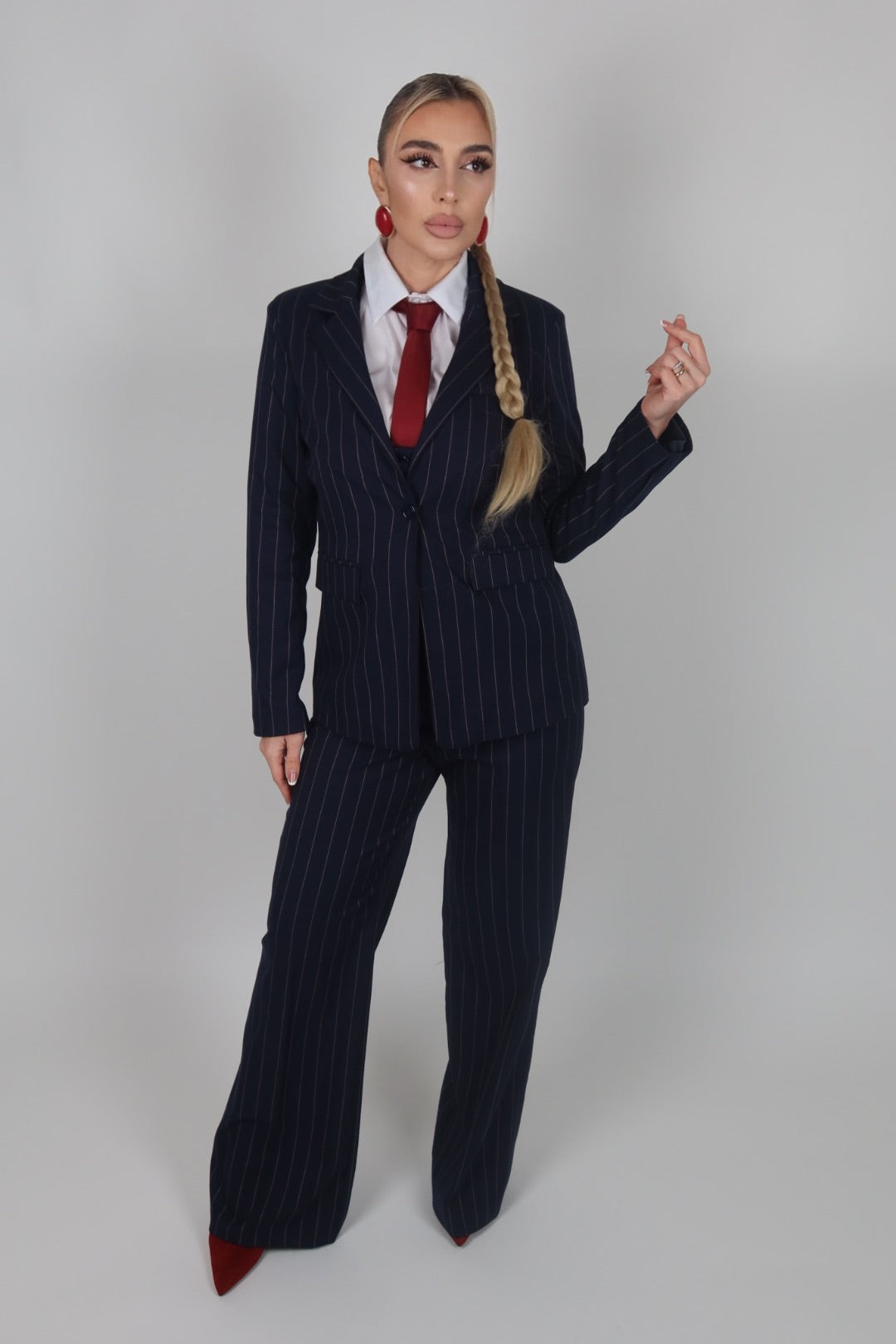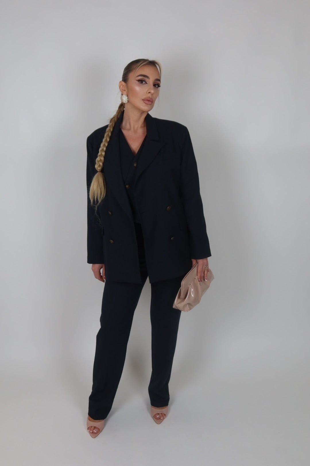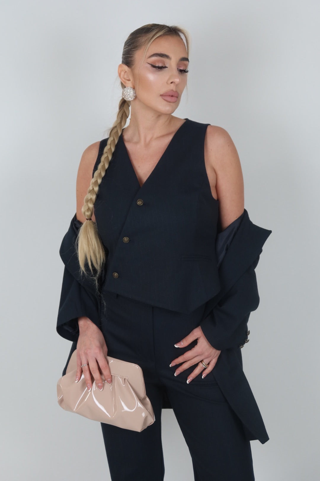 Tailleur azzurro polvere