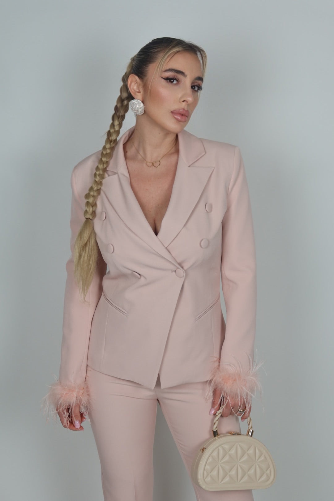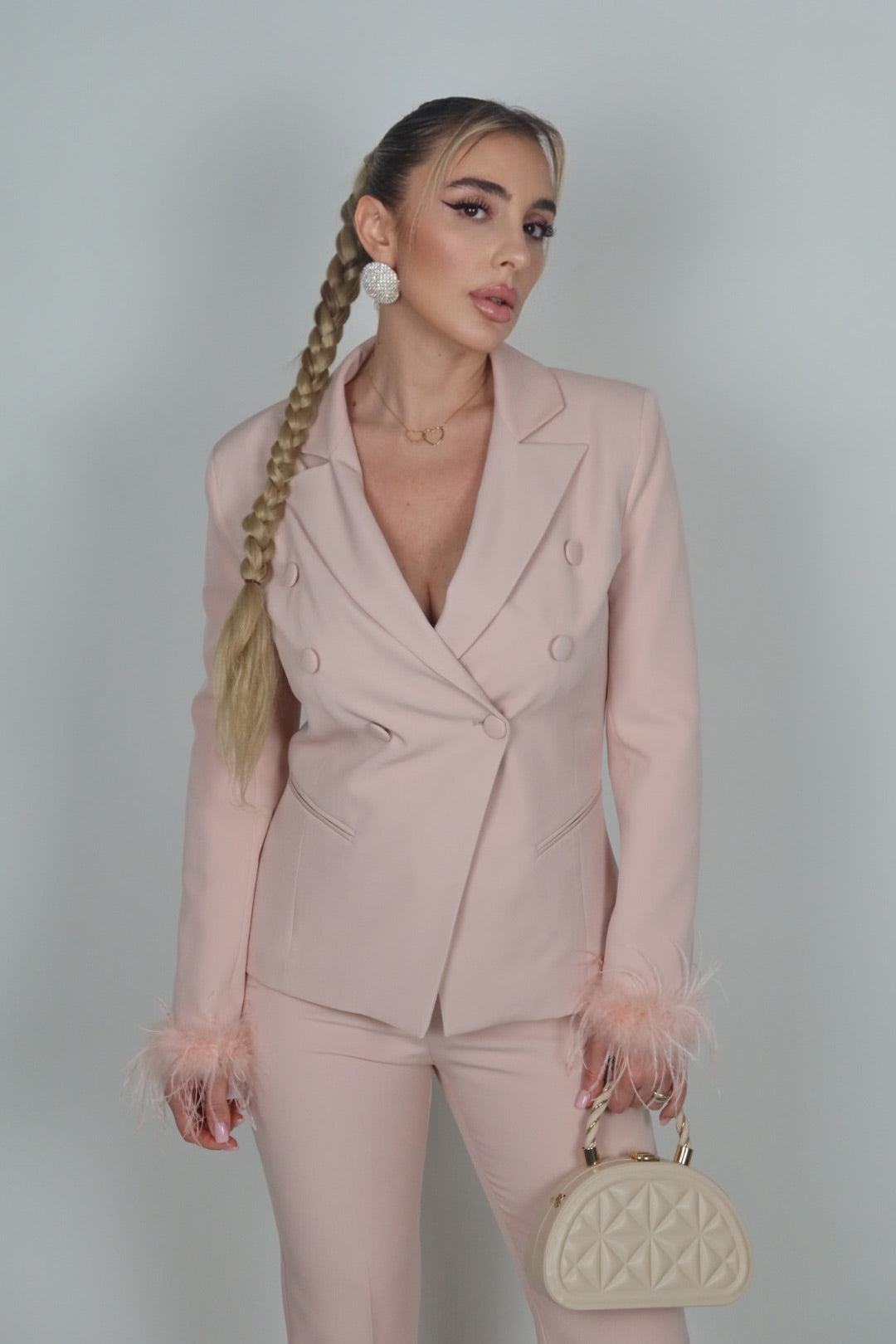 Giacca the queen plumage rosa cipria