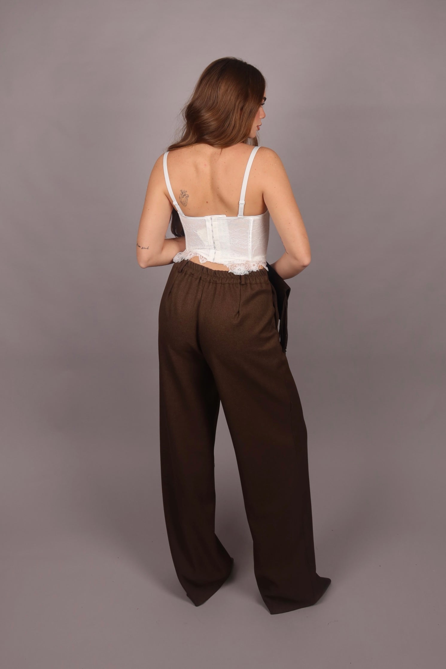 Top crop con bustino Brown