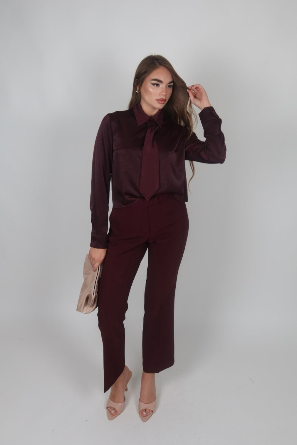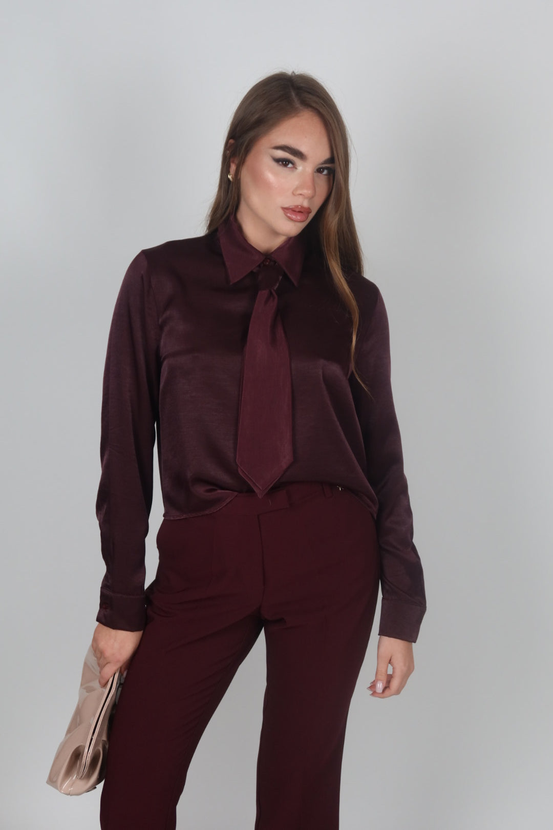 Camicia bordeaux con cravatta